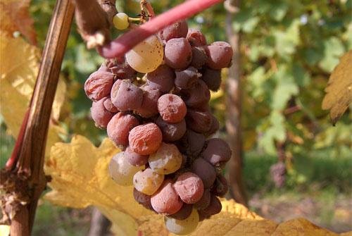 貴腐酒的名稱源自貴腐菌,當(dāng)葡萄受到這種霉菌感染時,表面就會布滿小小氣孔,使葡萄原有的水分漸漸變少,慢慢萎縮成扁扁的葡萄干,而此時,葡萄會自然呈現(xiàn)甜度集中的狀態(tài)。不過,想要讓貴腐菌對葡萄造成恰到好處的傷害,除了夜晚要有薄霧,隔日中午還必須要有陽光,此外,感染過程中,常會造成大量葡萄不能使用,也因此讓貴腐酒要價不菲。但甜如蜜的豐富香氣,使貴腐甜酒成為法王路易十四口中的王者之酒,就連在歌德的作品《浮士德》當(dāng)中,也曾迷戀的稱之為"生命之泉"。