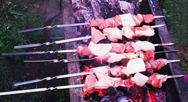 烤羊肉串是一種流行于中東、南亞、中亞、地中海、東亞等多個(gè)地區(qū)的羊肉菜式。在中國(guó),烤羊肉串的歷史可追溯至東漢時(shí)期,20世紀(jì)80年代以來(lái)隨著時(shí)代的發(fā)展,在大江南北傳揚(yáng)開來(lái)。烤羊肉串看似簡(jiǎn)單,要保證羊肉既入味又鮮嫩卻并非易事,工序也十分考究——取新鮮羊肉或切片切塊,串穿在細(xì)鐵釬上,放置在烤爐上焙烤,再撒上些辣子面、胡椒粉和孜然粉等,不斷翻動(dòng),烤至雙面金黃,肉質(zhì)熟透。