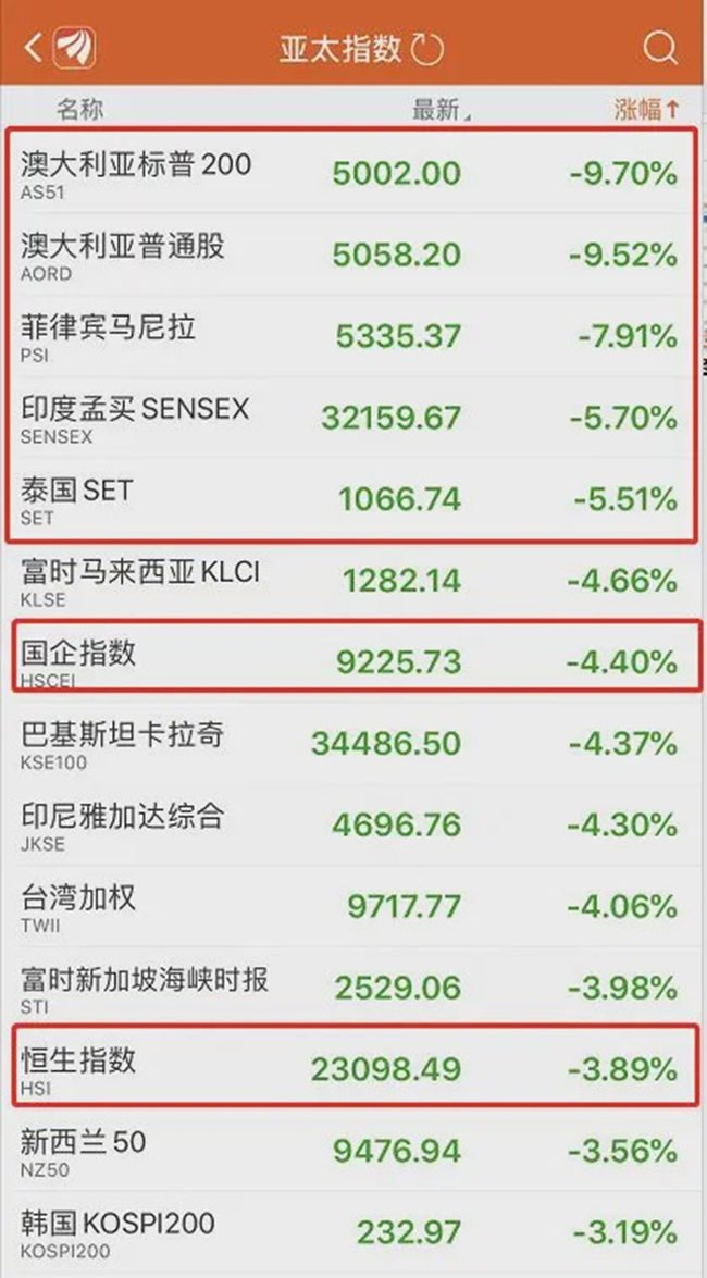 覆巢之下,無(wú)有完卵。早在3月16日,美股開(kāi)盤(pán)暴跌超7%后,亞太主要股市也集體下挫。