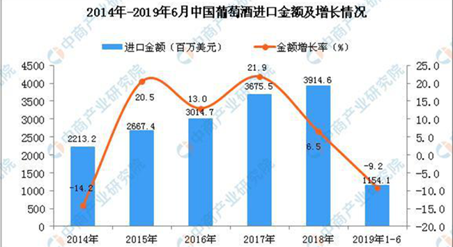 • 2019年1-6月中國葡萄酒進口量同比下降12.9%
