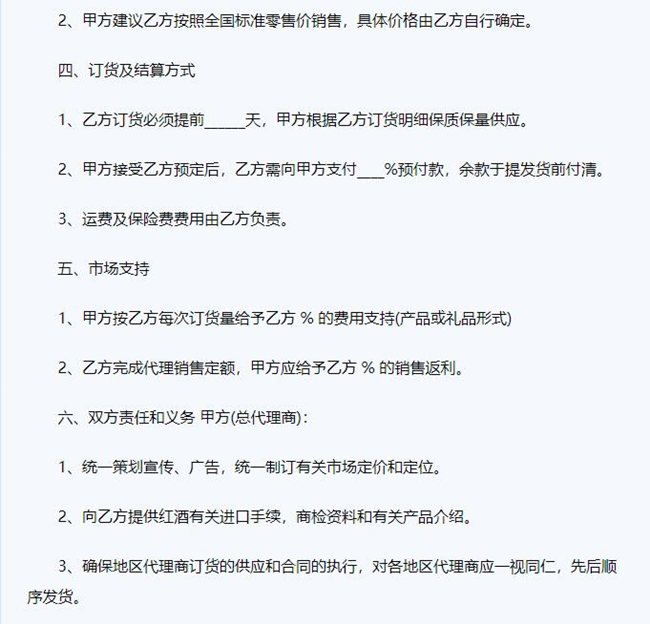 簽署紅酒代理合同的話,首先要注意仔細(xì)閱讀清楚合同的條款,詳細(xì)了解代理要求和支持政策以及違約責(zé)任等各方面的信息。確認(rèn)無(wú)誤后在簽署。