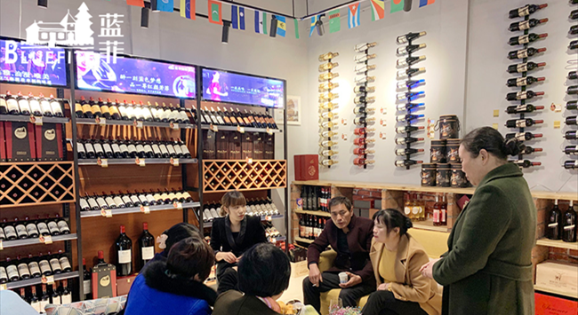 首先在店鋪落成方面,藍菲品牌整套VI全店輸出,不僅貼心的為代理商分析適合門店選址,更是免費為代理商量身定制店面裝修效果圖,協助紅酒代理商確定店面風格,同時結合代理商的喜好以及所在區域的文化特色,指導功能布局,迎合大眾喜好選擇裝修材質,高端大氣又不缺乏時尚感;其次是協助代理商建立完善的經營管理制度,包括店內渠道拓展、銷售人員話術培訓、客戶邀約洽談、人如何培養具有一定忠誠度的客戶等等;然后是塑造加盟實體店品牌魅力,藍菲酒業獨家定制的全套物資配件,上至恒溫柜、橡木桶、高腳杯、紅酒配件、高級禮盒等等物料都由專業的恒溫倉儲中心為您免費配送,下至廣告畫、易拉寶、產品手冊、宣傳視頻......葡萄酒培訓學院為您一手包辦;最后是策劃營銷方案并轉化為業績輸出,包括各類別葡萄酒擺放區域管理劃分、外包裝營銷、營銷酒會策劃方案、建立完善的會員制度、節假日爆款產品促銷方案.......
