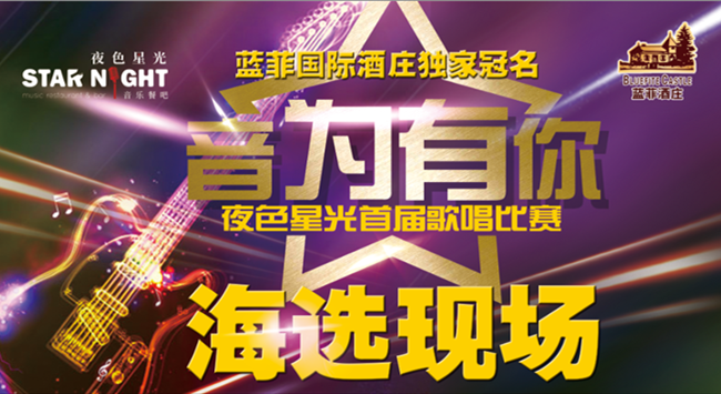 由東莞市藍菲酒業(yè)有限公司獨家冠名的,夜色星光音樂餐吧主辦的《音為有你》夜色星光首屆歌唱大賽全面啟動,初賽于8月9日-11日在廣州大道北佳潤廣場盛大舉行!來自五湖四海的100多個音樂人“音”為愛好而相聚在一起...